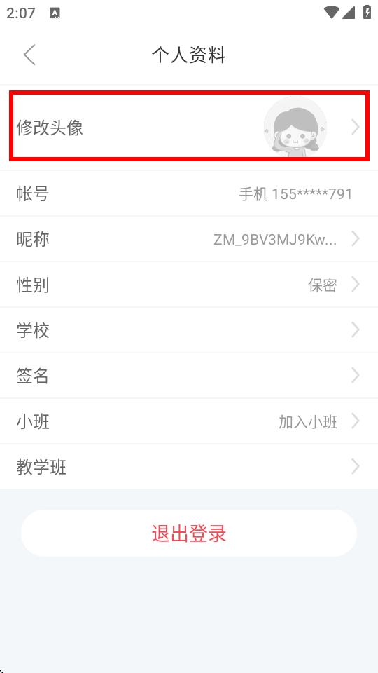 3、在個人資料頁面里,找到修改頭像選項并點擊。
