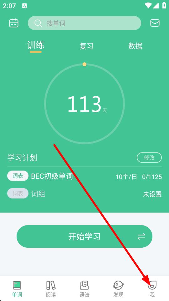 1、打開知米背單詞app,進入主界面后點擊底部導(dǎo)航欄中的我選項。