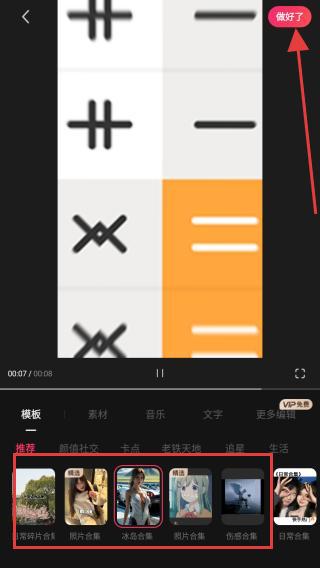 4、模版與素材匹配完成后,點擊頁面右上角做好了鈕,等待視頻渲染生成,即可保存到手機相冊。