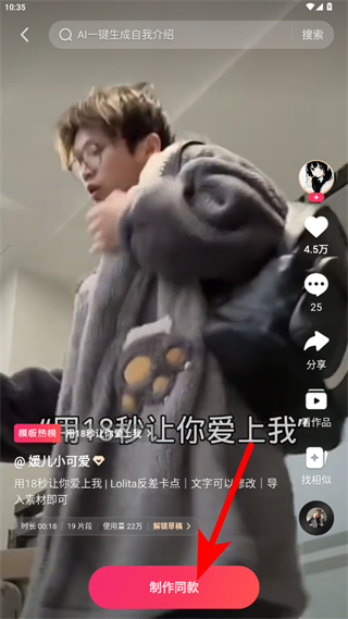 3、點擊模板下方的制作同款,進入素材選擇環(huán)節(jié)。
