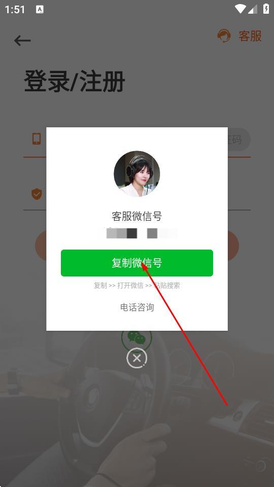 4、在彈出的客服信息窗口中,即可看到客服微信號,可點擊復制。