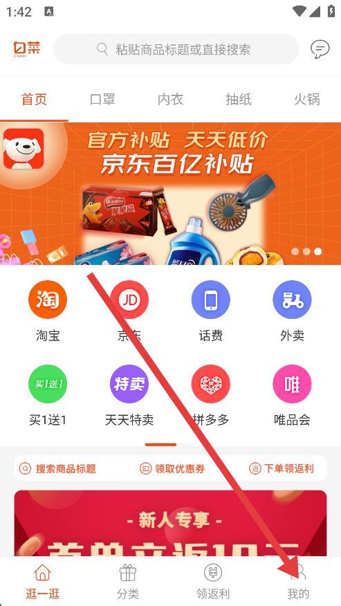 1、打開白菜優(yōu)惠券,點(diǎn)擊底部導(dǎo)航欄最右側(cè)的我的選項(xiàng),進(jìn)入個(gè)人中心頁面。
