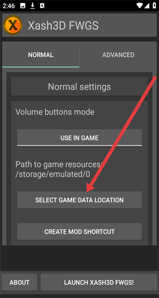 2、在切換模式后,點(diǎn)擊下方按鈕,進(jìn)行選擇游戲數(shù)據(jù)位置。