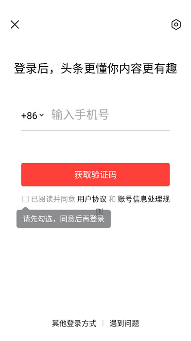 2、輸入用戶們自己個人的手機號并且點擊勾選同意,點擊獲取驗證碼;