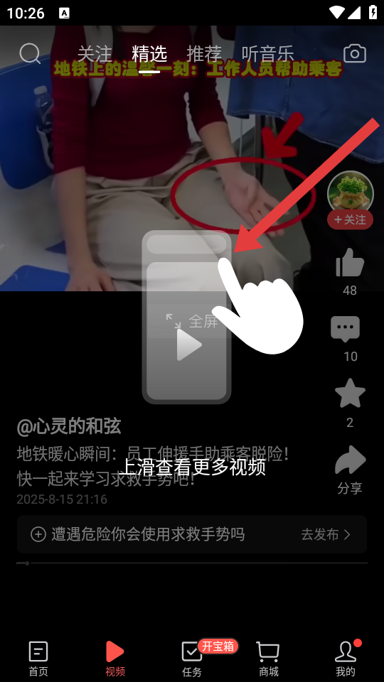 2、在第二個視頻欄目的界面,上滑屏幕查看更多的視頻內(nèi)容,可以瀏覽不同創(chuàng)作者發(fā)布的視頻。