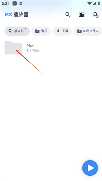 1、啟動(dòng)mx播放器的應(yīng)用,進(jìn)入首頁點(diǎn)擊視頻文件。