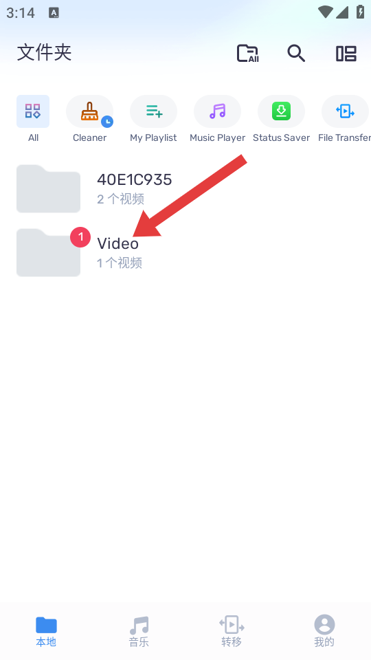 1、打開MX播放器,在本地頁面的文件夾列表中,點(diǎn)擊要播放視頻所在的文件夾。