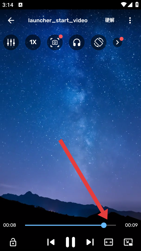 3、視頻自動(dòng)開始播放,界面顯示視頻內(nèi)容如星空畫面,可以點(diǎn)擊任意地方調(diào)出功能菜單。