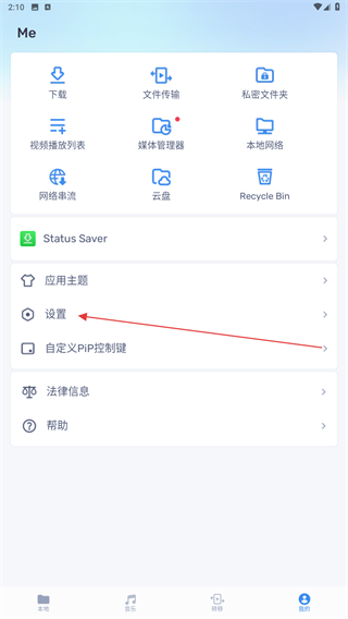 1、啟動(dòng)MX播放器的應(yīng)用,進(jìn)入首頁點(diǎn)擊導(dǎo)航欄中我的圖標(biāo)。