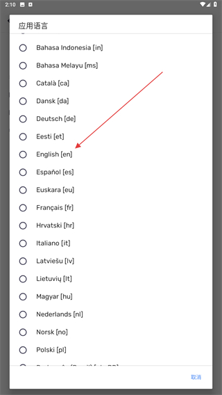 4、當(dāng)彈出語言選項(xiàng)內(nèi),選擇并點(diǎn)擊要更換的語言即可。