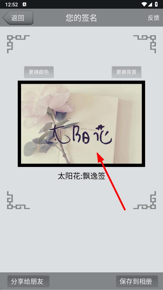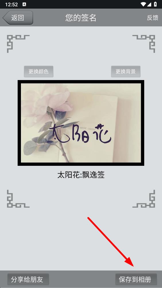 4、點擊保存到相冊的選項,即可保存簽名圖片。