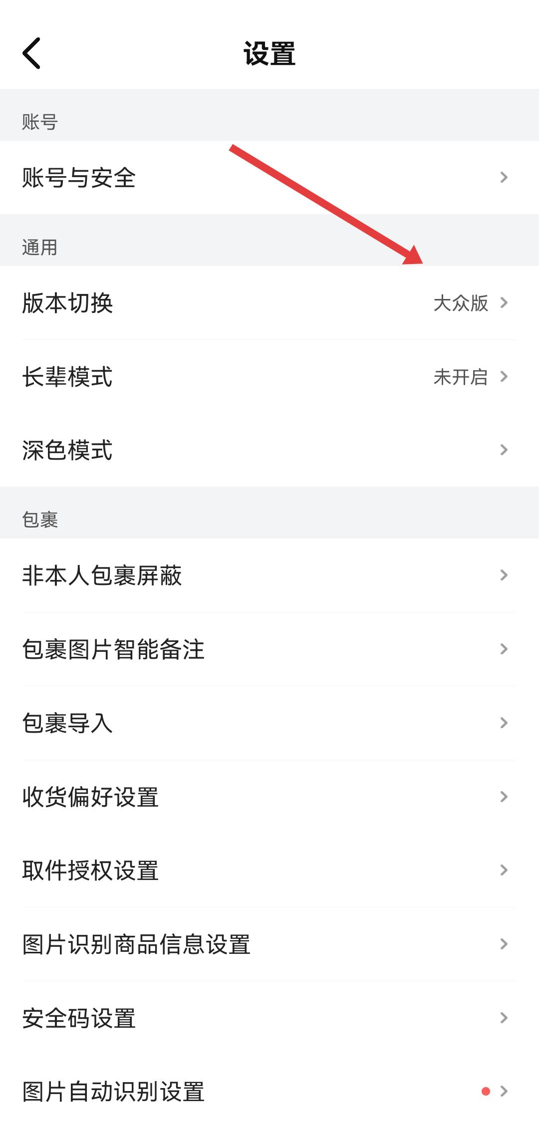 2、在設(shè)置頁(yè)面中,找到通用分類下的版本切換選項(xiàng),右側(cè)顯示當(dāng)前版本為大眾版,點(diǎn)擊進(jìn)入版本選擇頁(yè)面。