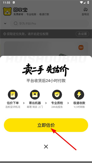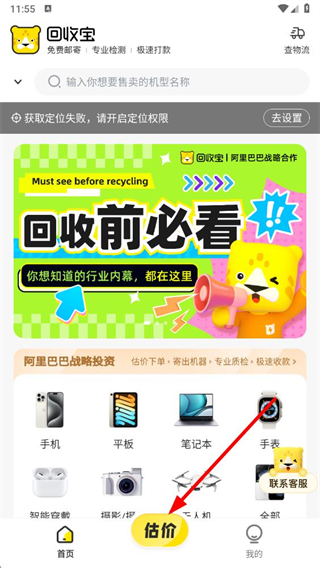 1、在回收寶app首頁(yè)點(diǎn)擊估價(jià)按鈕。