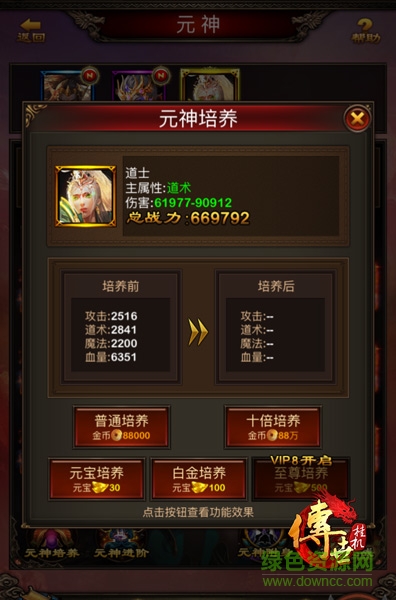 元神是《傳世掛機》中角色成長路上不可或缺的一部分,也是勇士們戰(zhàn)力高低的重要因素。中州大陸上的勇士們無時不刻不在研究如何提升元神,以來力求自身戰(zhàn)力的最大化。對于勇士們來說,首先可以通過金幣或者元寶兩種方式來進行元神培養(yǎng),讓元神四維屬性提升,這樣元神小伙伴將從中獲得更強的增益效果。
