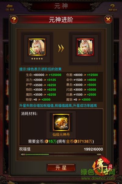 除了元神升級外,勇士們還可以通過元神丹來為元神升階,直接提升元神星級和戰(zhàn)斗力。勇士們擁有了元神丹之后,在元神進階頁面通過消耗元神丹即可提升元神星級,最大化強化元神屬性。元神丹又分為初級、中級、高級、仙級,分別用于不同時期的元神進階。作為勇士們提升元神實力的利器,此物在《傳世掛機》中被視為珍寶一般極其稀有。