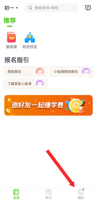 1、在高思教育的首頁,需要點擊底部我的,進入個人功能頁面。
