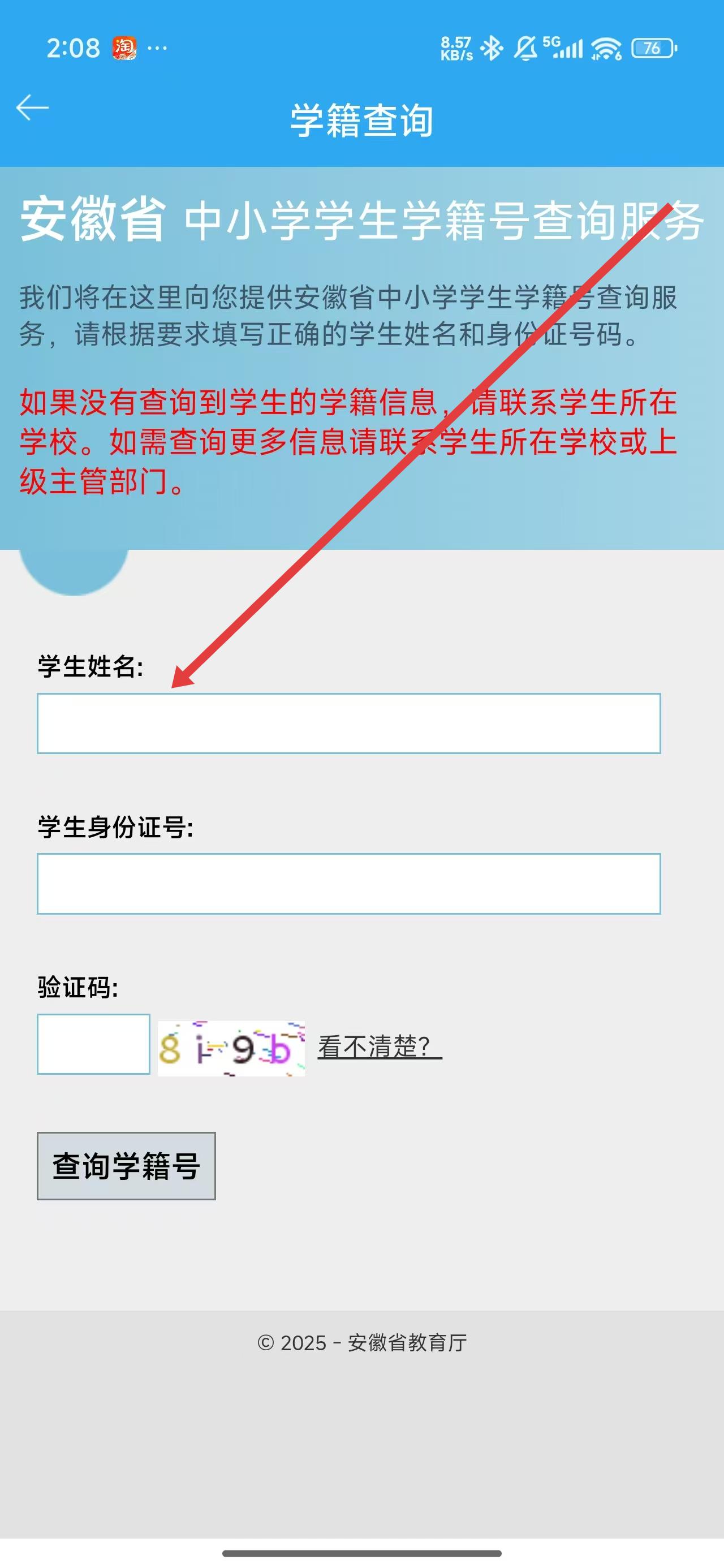 3、在進入到學籍查詢頁面中,在下列輸入框中依次輸入對應內容后完成對學籍信息的查詢。