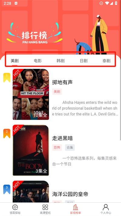 2、進(jìn)入后可以直接在排行榜處查看不同國家類型的作品,根據(jù)自己的喜好選擇不同國家欄目吧;