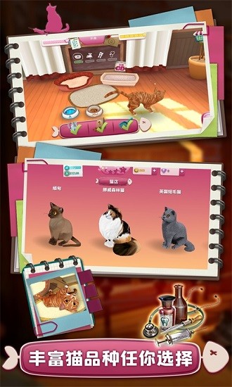 4、使用個(gè)人物件裝飾和設(shè)計(jì)您的貓貓酒店