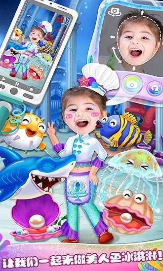 美人魚公主開了一家冷凍冰淇淋店。這里有很多種冰淇淋。許多海底生物在店里吃著美味的冰淇淋,美人魚公主忙著照顧所有的客人。她需要你幫忙做冷凍冰淇淋來招待我們的海底特殊客人。你能幫幫她嗎?我們開始吧。