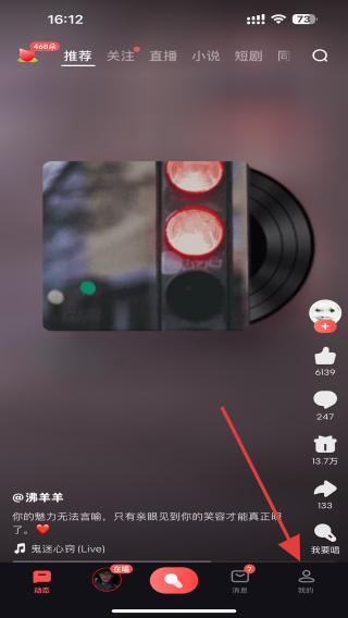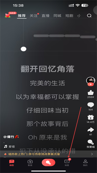 1、打開全名k歌的應用APP,進入導航欄中消息的圖標。