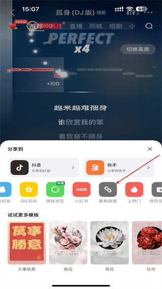 4、在底部彈出的分享選項中,點擊對應圖標即可將個人主頁鏈接分享給好友或發(fā)布到社交動態(tài)中。