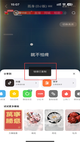 3、點擊后,當頁面呈現鏈接已復制的字眼表示已成功。