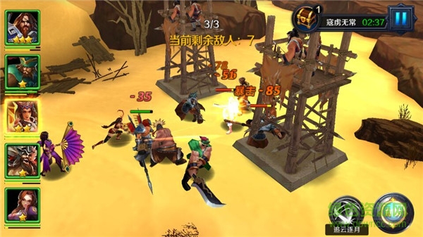 每個武將均擁有一個可以主動釋放的技能。在戰(zhàn)斗中,當(dāng)武將怒氣值滿時(shí),可以通過點(diǎn)擊武將頭像,并選擇釋放位置的方式,手動釋放技能。戰(zhàn)斗中,武將可以通過攻擊、被攻擊、殺死敵人三種方式來獲得怒氣。PVE戰(zhàn)斗中,敵方的數(shù)量可以多于5人。若在規(guī)定時(shí)間內(nèi),我方將敵方全部擊殺,則戰(zhàn)斗勝利;若我方被敵方全部擊殺或者在規(guī)定時(shí)間內(nèi),敵方尚未被全部擊殺,則戰(zhàn)斗失敗。