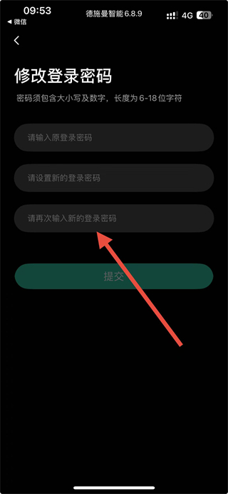 4、在修改登錄密碼頁面輸入原登錄密碼和新登錄密碼,點(diǎn)擊提交按鈕,完成密碼更換操作。