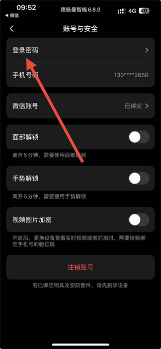 3、在賬號與安全頁面點(diǎn)擊登錄密碼選項(xiàng),進(jìn)入修改登錄密碼頁面。