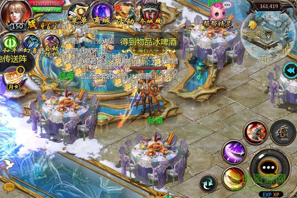 宴會(huì)舉辦期內(nèi),每隔30分鐘,餐桌的周圍都將出現(xiàn)一批宴會(huì)菜肴和冰啤酒,食用菜肴即可獲得菜肴提供的對(duì)應(yīng)效果,而宴會(huì)期間飲用宴會(huì)專用酒可在宴會(huì)期間為你提供較多經(jīng)驗(yàn)。