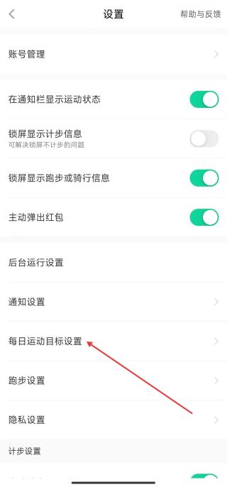 2、在設(shè)置列表里,下滑找到每日運(yùn)動目標(biāo)設(shè)置選項(xiàng),點(diǎn)擊進(jìn)入。