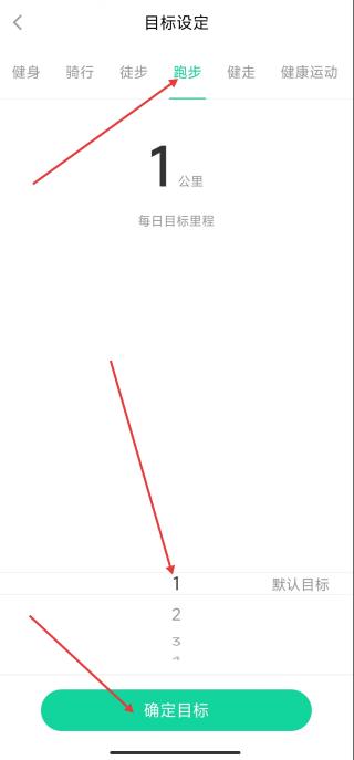 3、在目標(biāo)設(shè)定頁面,選擇跑步界面,通過點(diǎn)擊數(shù)字選擇或手動輸入,設(shè)置每日計(jì)劃達(dá)成的運(yùn)動步數(shù),確認(rèn)后點(diǎn)擊底部確定目標(biāo)按鈕,完成運(yùn)動步數(shù)目標(biāo)設(shè)置。