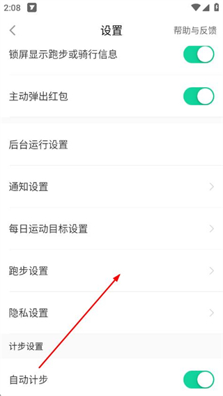 3、在設(shè)置頁面點(diǎn)擊跑步設(shè)置,進(jìn)入跑步設(shè)置頁面。