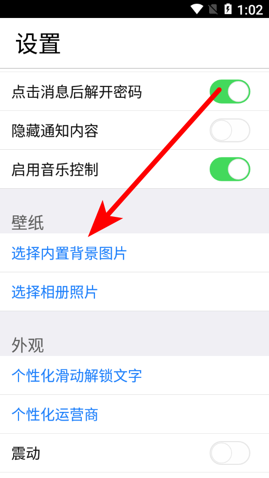 2、在設(shè)置界面中,找到并點(diǎn)擊選擇內(nèi)置背景圖片選項。