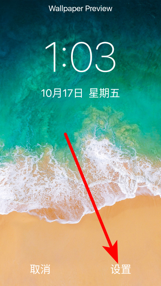4、點(diǎn)擊選中的圖片,進(jìn)入壁紙預(yù)覽界面,點(diǎn)擊設(shè)置按鈕,即可完成壁紙更換。