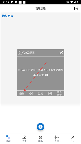 3、確定運(yùn)行模式后,界面會(huì)彈出浮窗,在浮窗中點(diǎn)擊左下方的錄制按鈕。