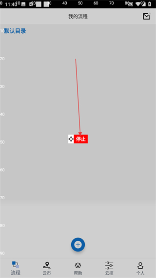 1、打開觸控精靈應(yīng)用,進(jìn)入我的流程界面,點(diǎn)擊界面底部的藍(lán)色加號(hào)按鈕。