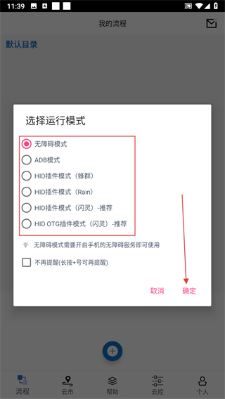 2、彈出選擇運(yùn)行模式窗口,在窗口中選擇合適的運(yùn)行模式后點(diǎn)擊確定按鈕。