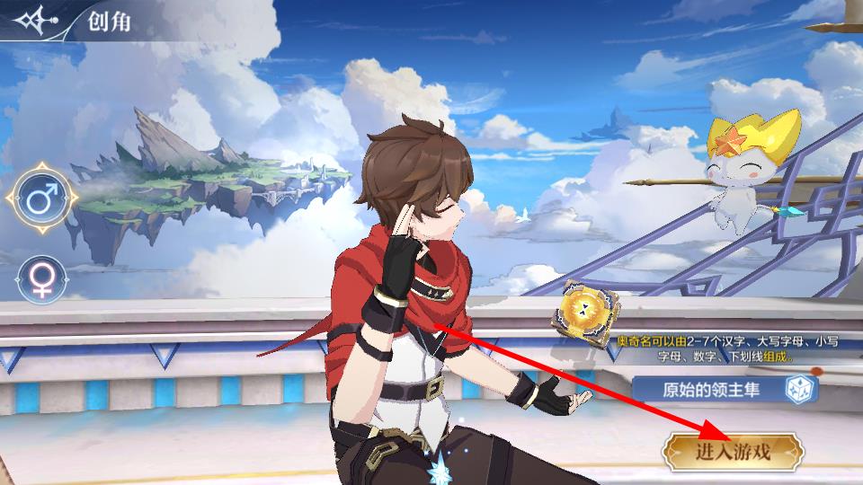1、在《奧奇?zhèn)髡f》創(chuàng)角界面,選擇好性別并輸入符合要求的奧奇名后,點(diǎn)擊進(jìn)入游戲按鈕,開啟游戲之旅。