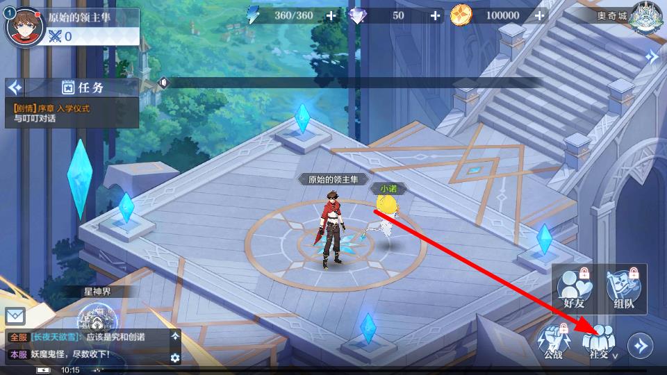 2、進(jìn)入游戲場景后,點(diǎn)擊右下方的社交按鈕,可以在游戲中添加好友、參與公戰(zhàn)等社交互動,拓展游戲社交圈。