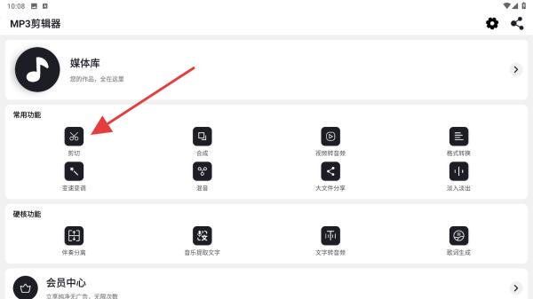 1、打開MP3剪輯器APP,在首頁內(nèi)點(diǎn)擊剪切的功能按鈕。