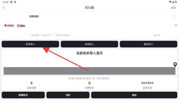 2、進(jìn)入到剪切的頁面內(nèi),點(diǎn)擊樂庫導(dǎo)入的按鈕。