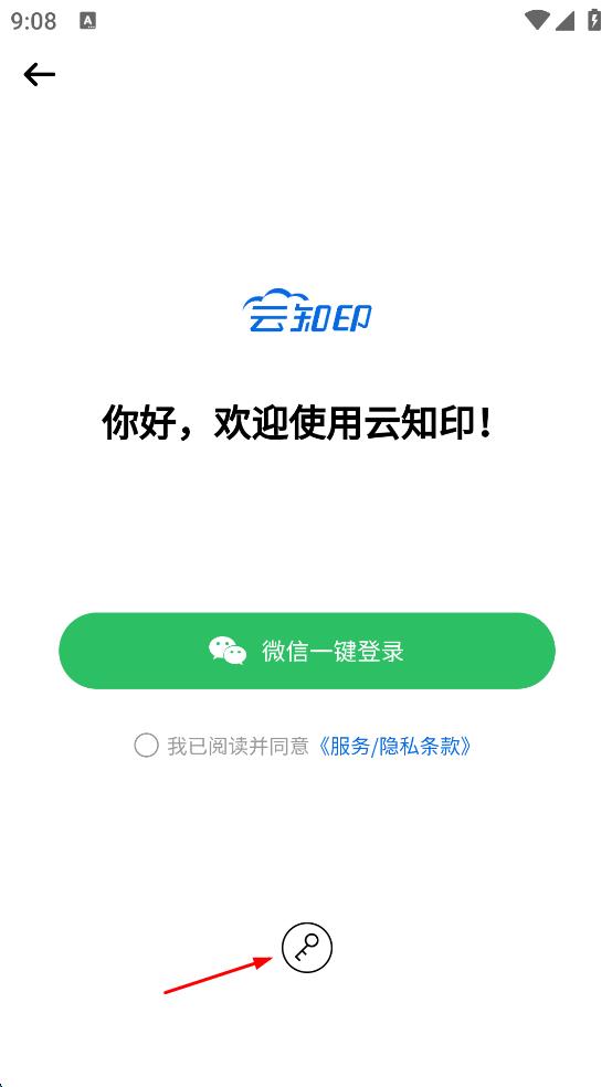 3、進入登錄頁面后,點擊下方鑰匙形狀的密碼登錄圖標。