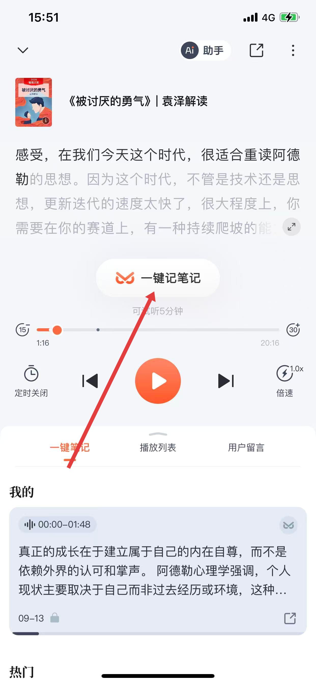 2、在播放頁面中,找到并點(diǎn)擊一鍵記筆記按鈕,它一般會在播放進(jìn)度條附近。