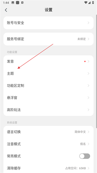 3、在設(shè)置界面中,找到并點(diǎn)擊主題選項(xiàng)。