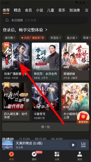 1、在懶人聽(tīng)書(shū)首頁(yè),點(diǎn)擊目標(biāo)音頻,進(jìn)入音頻詳情頁(yè)面。