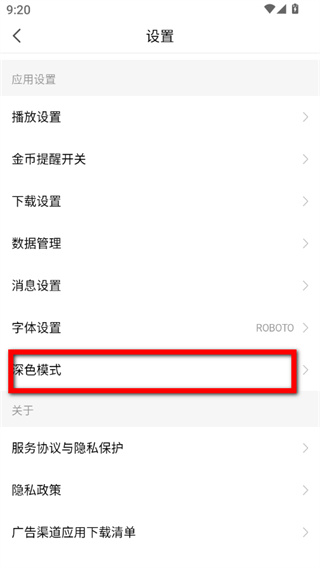 3、在設(shè)置頁(yè)面,點(diǎn)擊深色模式選項(xiàng),進(jìn)入深色模式設(shè)置界面。