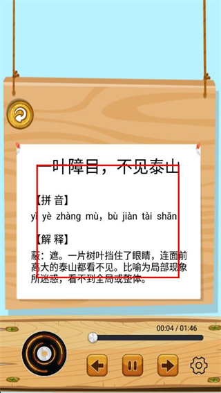 4、進入成語故事詳情頁面,即可開始聽成語故事。