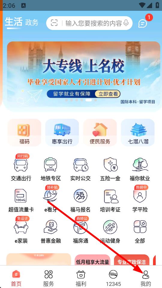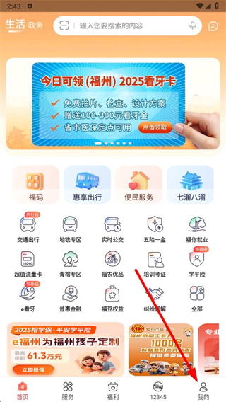 1、在e福州APP首頁,點擊底部我的選項進入個人中心頁面。